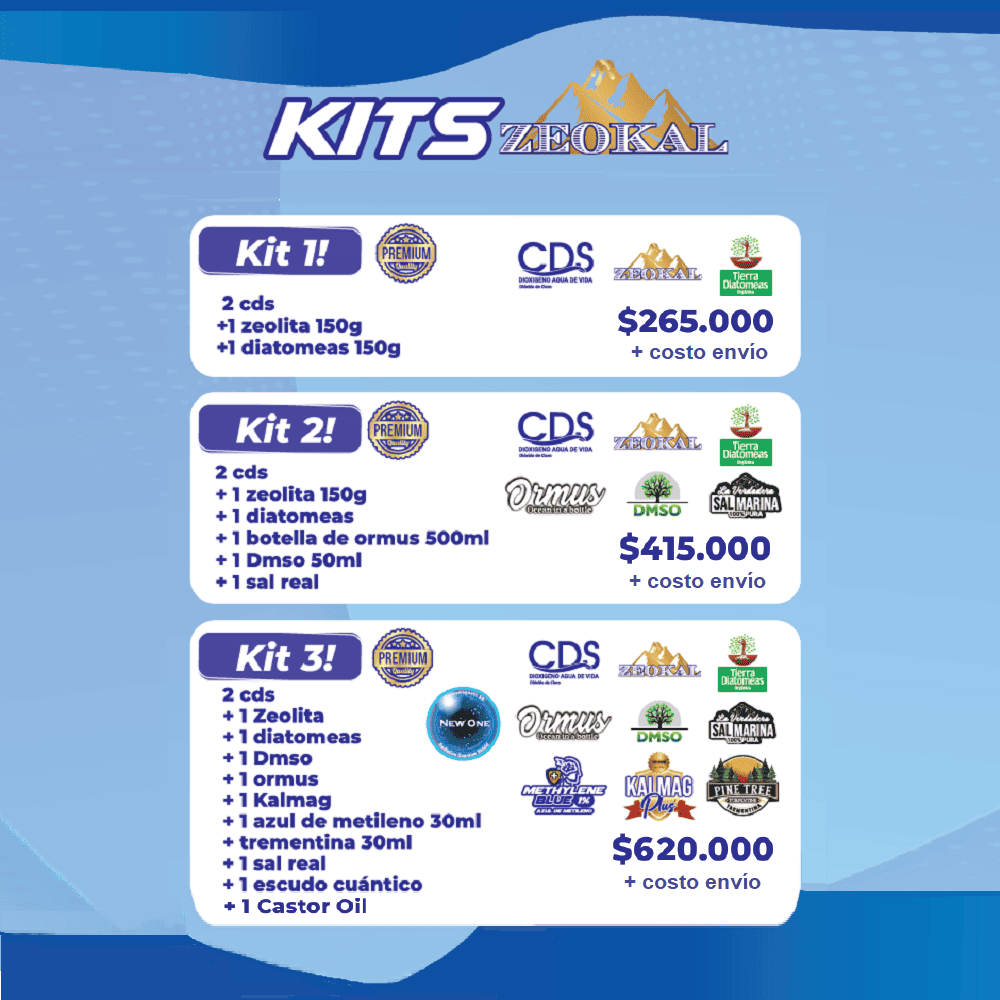 Este paquete incluye productos cuidadosamente seleccionados para apoyar tu salud de manera integral: desde el Kalmag Plus, Ormus, Pine Tree que optimiza tu energía y rendimiento, hasta el Escudo Cuántico New One Shield, ideal para bloquear las radiaciones nocivas. Además, contiene Methylene Blue, CDS, Tierra de Diatomeas y Zeolita Zeokal, podrás eliminar toxinas y mantener el equilibrio interno. Perfecto para quienes buscan bienestar total y no se conforman con menos.